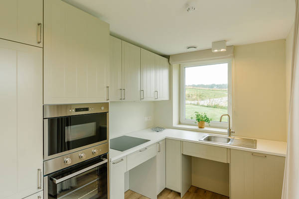 Espace accessible au rez-de-chaussée : entièrement sans obstacle et adapté aux personnes à mobilité réduite, avec une salle de bains supplémentaire accessible en fauteuil roulant.