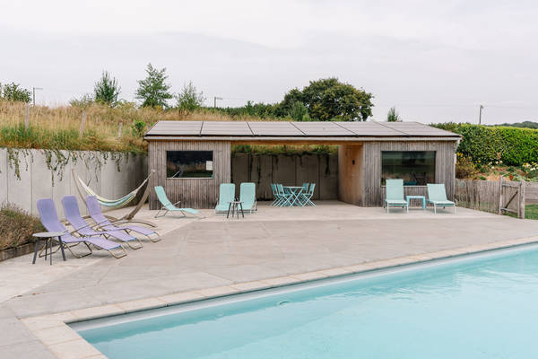 La maison de vacances est entièrement privée et réservée exclusivement à votre groupe. La piscine et le sauna, situés dans un espace bien-être commun, sont en accès libre, sans créneaux horaires fixes, pour une détente en toute sérénité.
