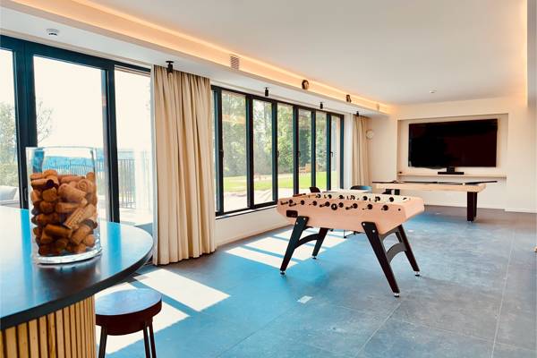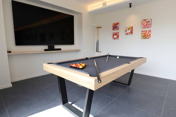 Détendez-vous dans deux salons élégants et profitez de l'espace multifonctionnel, modulable en salle de réunion ou en espace de divertissement avec billard, baby-foot et bar. Vous pouvez également vous détendre dans le sauna avec douche, la salle de fitness ou la piscine de 14 mètres (chauffée du 1er juin au 30 septembre). À l'extérieur, un agréable terrain de pétanque vous attend pour des moments conviviaux en famille ou entre amis.