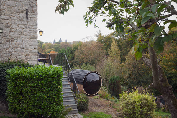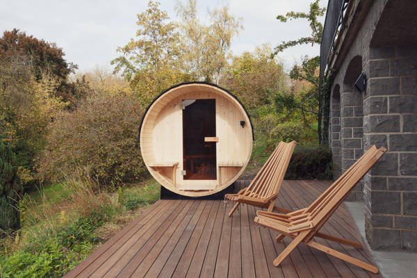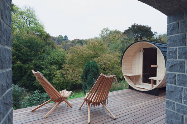 À l'extérieur, deux terrasses spacieuses vous invitent à la détente. Pendant la journée, vous pouvez y prendre votre petit-déjeuner au soleil matinal, lire un bon livre au milieu de la verdure ou prendre l'apéritif avec vue sur la forêt. Le soir, c'est l'endroit idéal pour dîner au coucher du soleil ou, pendant les mois plus frais, pour se détendre dans le sauna extérieur avec vue sur la nature.
