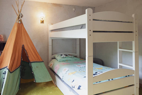 La maison peut accueillir confortablement 9 personnes et dispose de 5 chambres agréables, réparties entre le premier et le deuxième étage. Trois chambres sont équipées d'un lit double confortable, tandis que les deux chambres d'enfants sont équipées de lits simples et superposés, ce qui est idéal pour les familles ou les séjours entre amis.