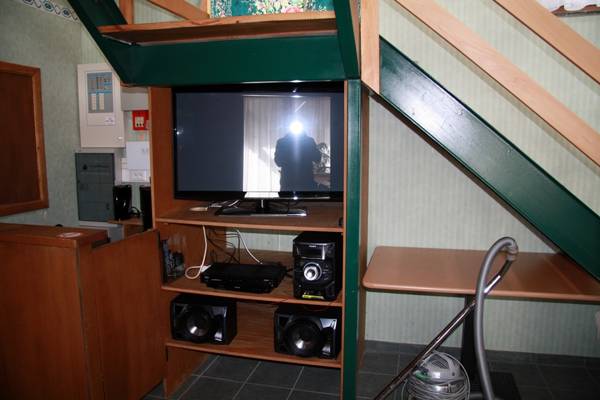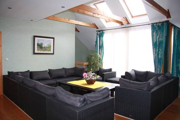 Au 1er étage il y a le salon avec balcon. Ici aussi il y a une télévision écran plat avec lecteur DVD. À l’arrière et à l’avant il y a une terrasse avec mobilier. Internet (WiFi) disponible. Le propriétaire a un bureau outdoor où vous pourrez organiser tout genre d’activités extérieures. Il y a également moyen d’arranger le catering.