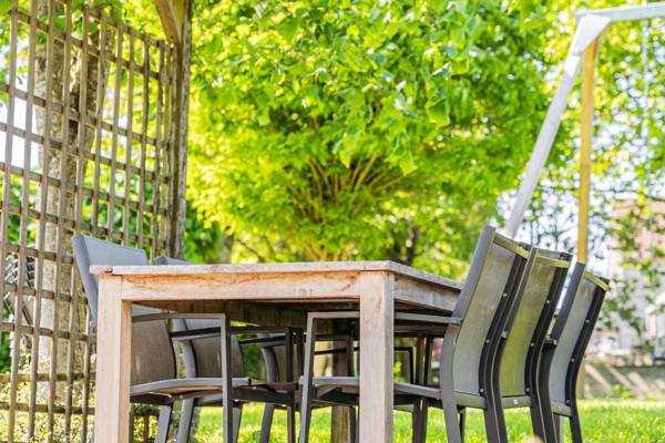 A l'extérieur vous profiterez d'un très grand jardin avec terrasse et barbecue. Il y a un parking privé pour 2-3 voitures (il y a aussi une place publique pour la Pommeraie). Des jeux de plein air pour enfants sont disponibles.