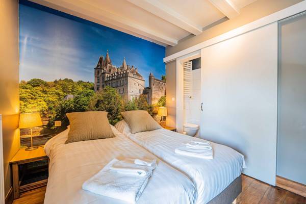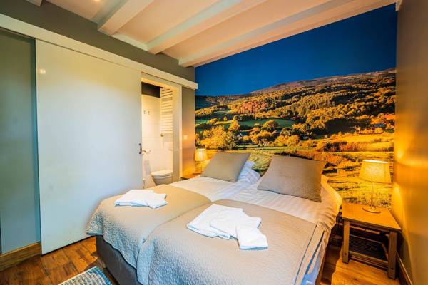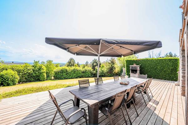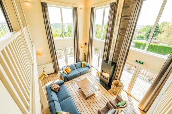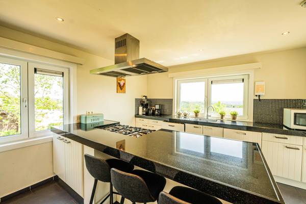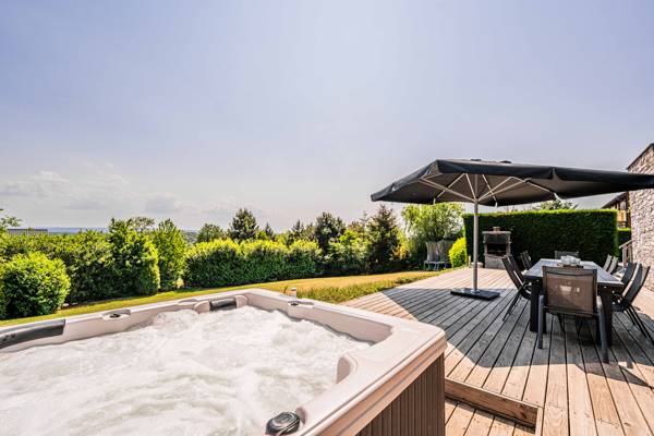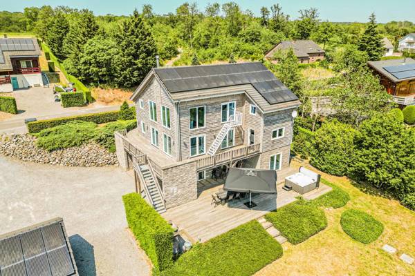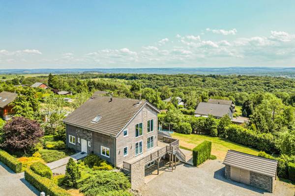 Cette villa est magnifiquement située sur un flanc de colline et a une vue imprenable sur la vallée. Ce chalet de luxe à Durbuy est équipée de tout le luxe : sauna avec 2 douches en cascade, living avec feu ouvert, 8 chambres à coucher, 8 salles de bain, cuisine équipée avec îlot, pièce de détente avec babyfoot.