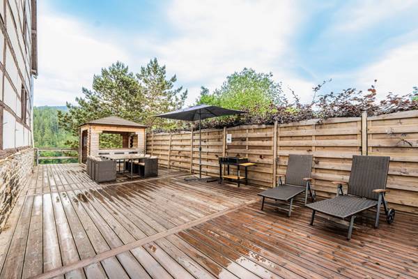De la terrasse, vous avez une vue magnifique sur le lac de Coo. Sur la terrasse se trouve le sauna et le jacuzzi chauffés toute l'année. L'utilisation du sauna coûte 2 € par heure et n'est pas obligatoire.