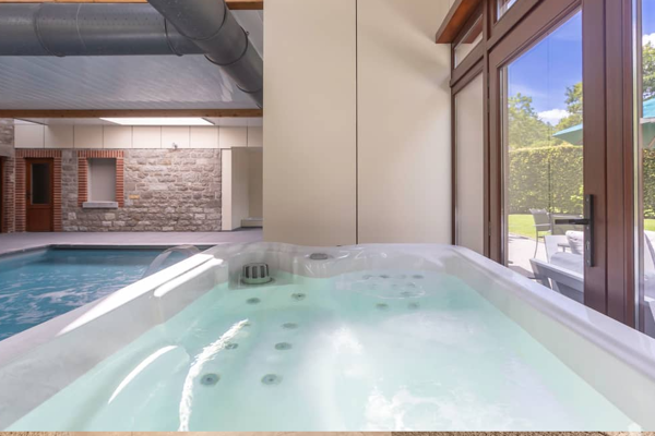 À l'intérieur, vous trouverez un salon confortable avec un poêle à bois et une cuisine moderne entièrement équipée. L'espace bien-être est un véritable atout : piscine intérieure chauffée, sauna et jacuzzi couvert. À l'extérieur, vous trouverez un charmant jardin clôturé avec un terrain de pétanque, un barbecue et des sièges pour profiter ensemble de longues soirées.