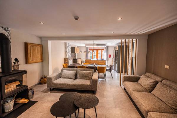 Profitez d'un séjour merveilleux dans ce gîte élégant à Sy-Ferrières, directement sur les rives de l'Ourthe. La maison peut accueillir 10 personnes, réparties dans 5 chambres, chacune avec sa propre salle de bains. Une chambre est située au rez-de-chaussée, idéale pour les personnes à mobilité réduite ou les clients qui souhaitent dormir au rez-de-chaussée.