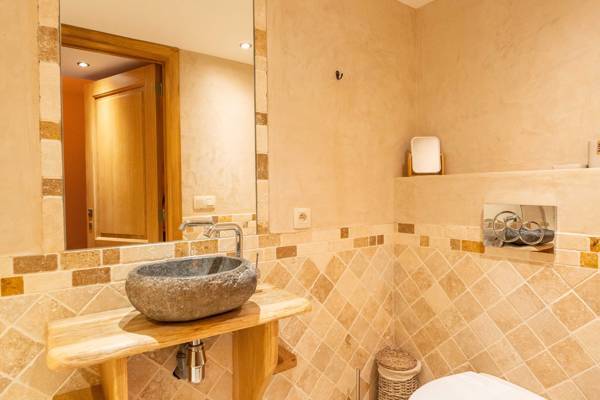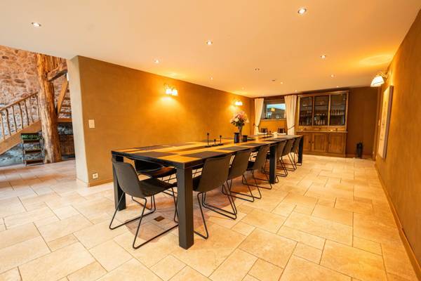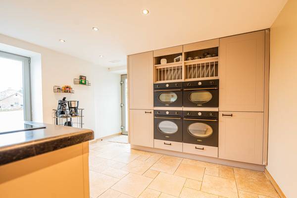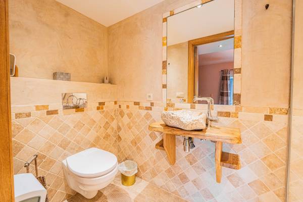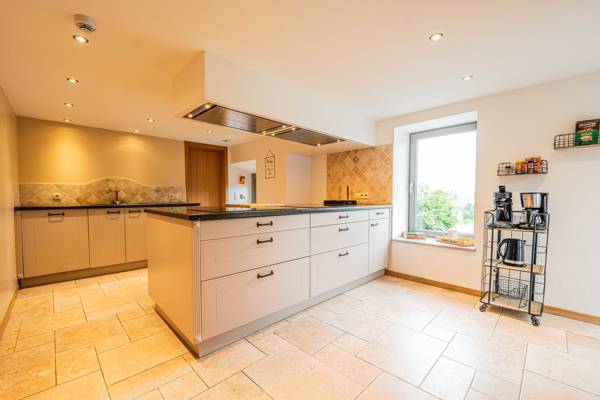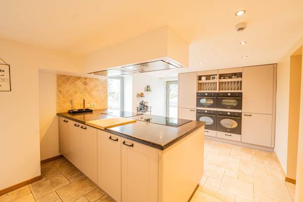 Disposition: Grand salon avec cheminée à foyer fermé et Smart TV au format cinéma. La salle à manger adjacente est spacieuse avec une grande table à manger pouvant accueillir 10 personnes. Depuis le salon, vous pouvez vous rendre au 1er étage où se trouvent 5 chambres à coucher, toutes dotées d’une luxueuse salle de bain privée avec douche, lavabo et toilettes. À côté de la salle à manger se trouve une cuisine spacieuse avec entre autres 2 plaques en vitrocéramique, 2 micro-ondes, 2 fours à air chaud, 2 réfrigérateurs et un lave-vaisselle. Dans le local technique, un congélateur, une machine à laver et un sèche-linge.
