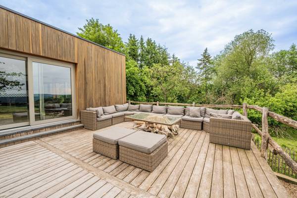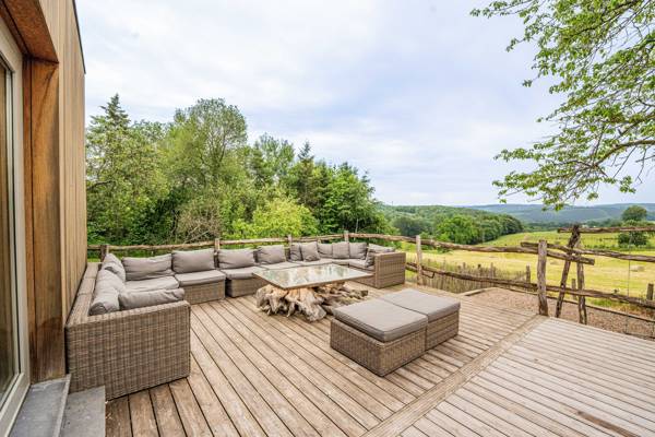 La villa est située dans une rue à faible trafic dans un village typique des Ardennes. L'arrière donne une vue magnifique sur les vallées et les collines des Ardennes. Vous pouvez entrer dans la villa par l'avant avec accès au vestiaire et à la salle à manger ou à la cuisine sur le côté.