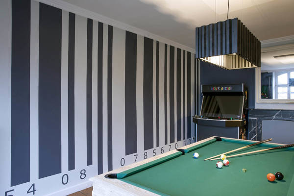 Au 1er étage vous trouverez la salle de détente avec console de jeu, jeu d'arcade, billard, fléchettes et système de son. Au 2ème étage se trouve le cinéma / situé avec projecteur, Playstation 5, cette salle peut également être utilisée comme salle de réunion, il y a des choses à disposition comme un paperboard.