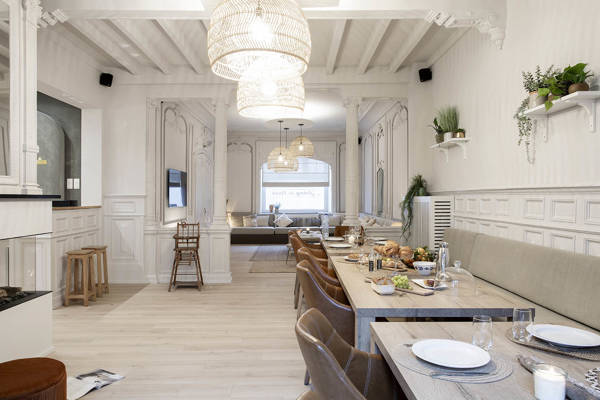 La cuisine ouverte est équipée d'un four, micro-ondes, lave-vaisselle, réfrigérateur, cafetière, Nespresso, machine à glaçons, grille-pain, presse-agrumes et bouilloire. Dans le garde-manger se trouvent la machine à laver et le sèche-linge et vous y trouverez également un réfrigérateur / congélateur supplémentaire. Il y a un total de 12 chambres, chacune avec son propre thème, et 12 salles de bains.