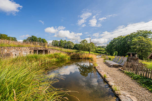 Il comprend 5 chambres, une mezzanine, 6 douches et 5 toilettes. Détendez-vous dans le jacuzzi pour 7 personnes, le sauna et son espace détente, ou rafraîchissez-vous dans l'étang de baignade unique et sa terrasse ensoleillée.