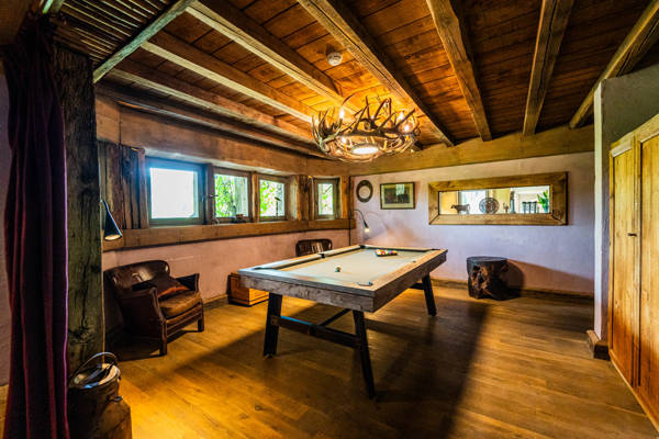 Il y a neuf chambres, chacune avec sa propre salle de bain et ses toilettes, ainsi qu'une chambre supplémentaire avec deux lits simples. Pour votre détente, cette villa dispose d'une piscine intérieure, d'un bar avec pompe à bière, d'une salle de billard et d'un espace bien-être avec sauna, hammam et douches.