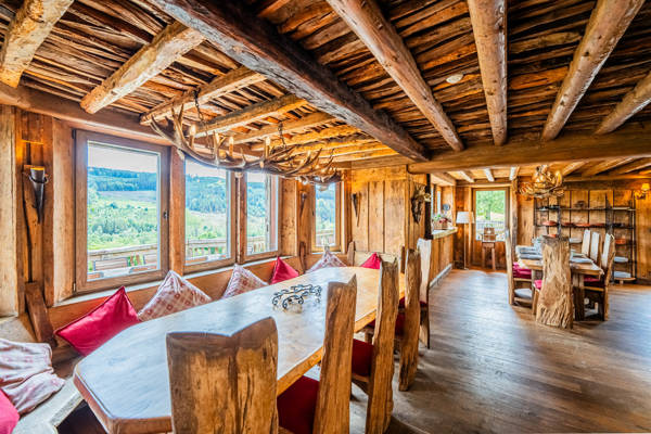 Ce charmant chalet, aux finitions en bois massif, respire le confort. Le salon avec cheminée offre une vue magnifique sur la vallée. La cuisine est entièrement équipée avec four, micro-ondes, lave-vaisselle, plaques de cuisson, réfrigérateur, congélateur, lave-linge et sèche-linge.