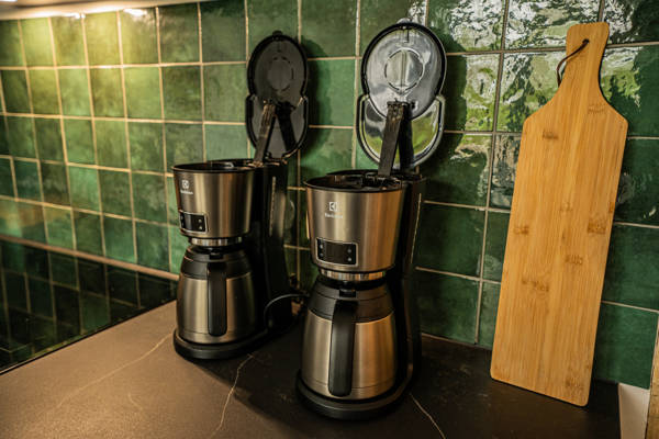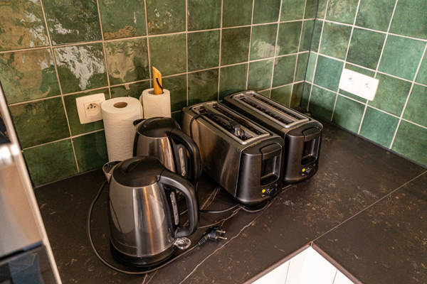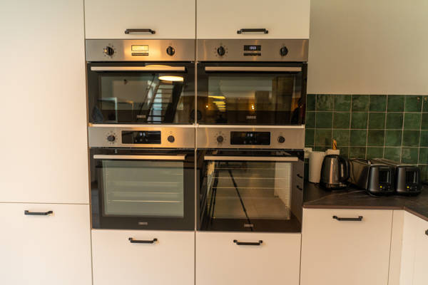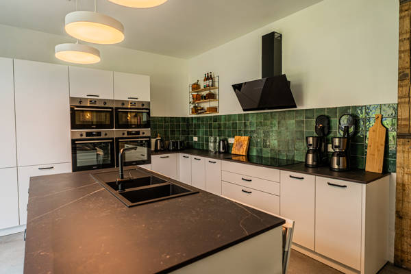 La cuisine moderne est équipée de toutes les commodités telles que 2 lave-vaisselle, 2 réfrigérateurs, 1 congelateur, 2 fours, 2 fours mixtes, cafetière filtre, grille-pain, bouilloire et mixeur.