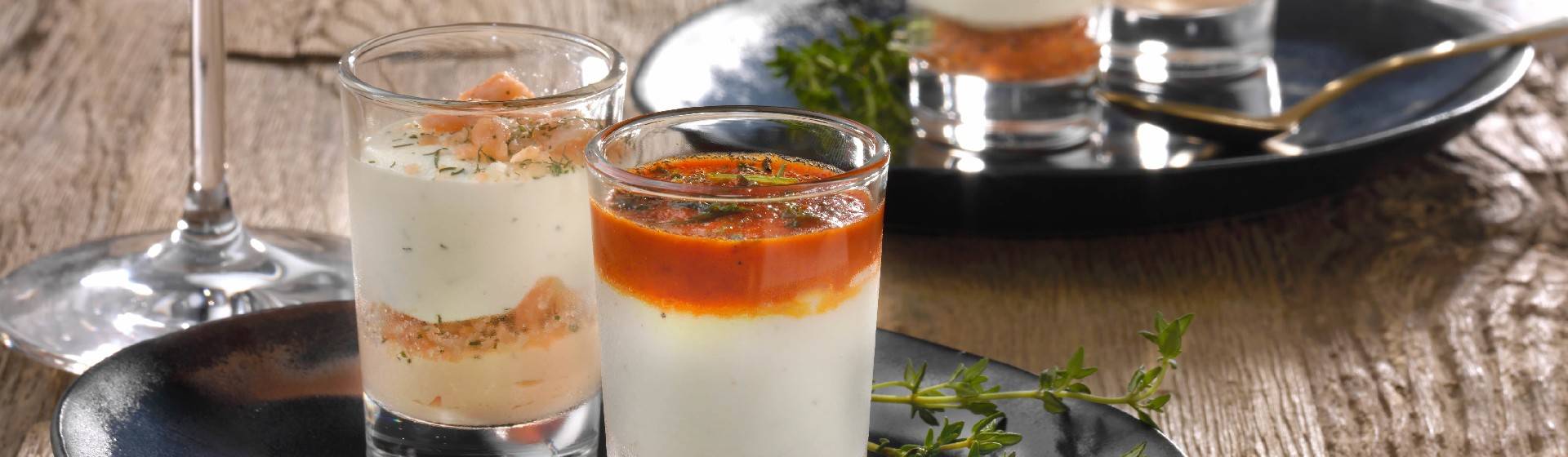 Zalmtartaar met dillecrème & geitenkaas met tomaten confit.